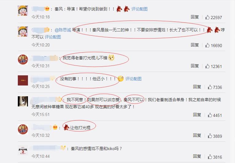 评论区很多粉丝表示,刘昊然可以谈恋爱,但秦风不可以!