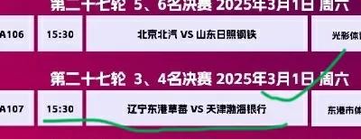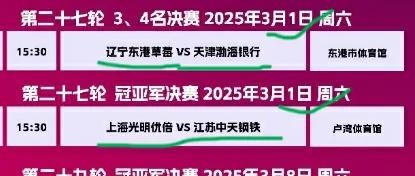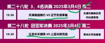中国排协: 决赛比赛时间表 3月1号-3月4号 天津女排比赛时间表