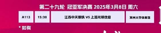 决赛第二轮比赛 上海女排对阵江苏女排,决赛第二轮比赛,比赛时间是3月4号的晚上七点半开打。比赛场地是江苏女排主场常州大学体育馆。