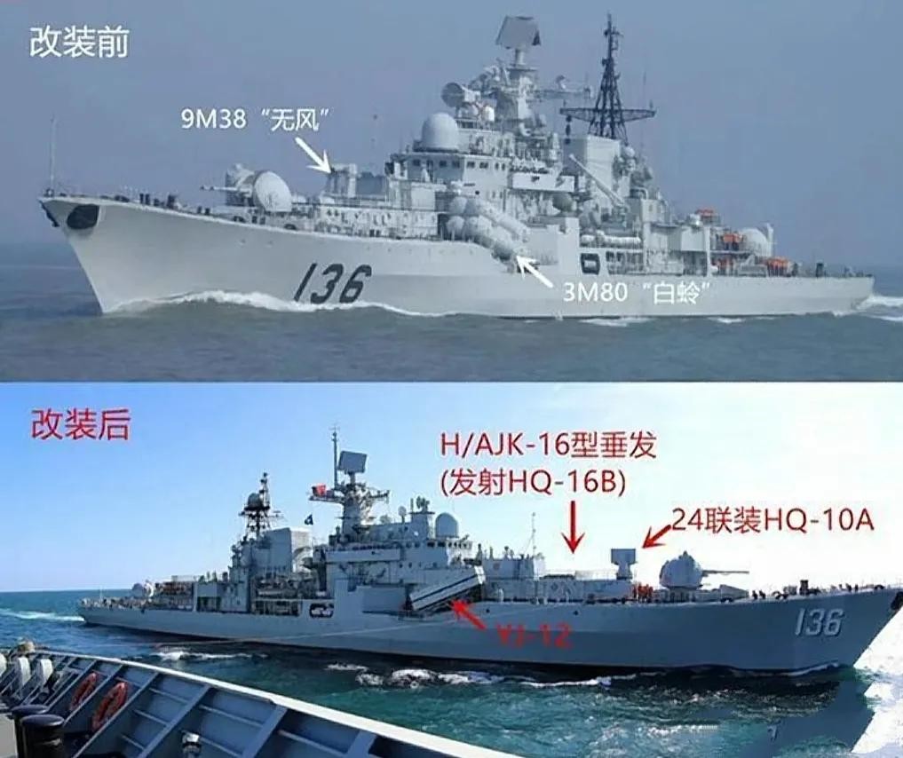 特点:4艘956E/EM型现代级驱逐舰,标准排水量6500吨,满载排水量7940吨,最大航速32节。火力:主要装备2座四联装日炙反舰导弹系统,2套SA-N-7防空系统,4门AK-630防空炮/2座“卡什坦”弹炮合一近防系统,2/1座AK-130型双联装的130MM舰炮。升级:136舰和137舰已经升级完成,包括雷达航电系统的改进和火力升级。