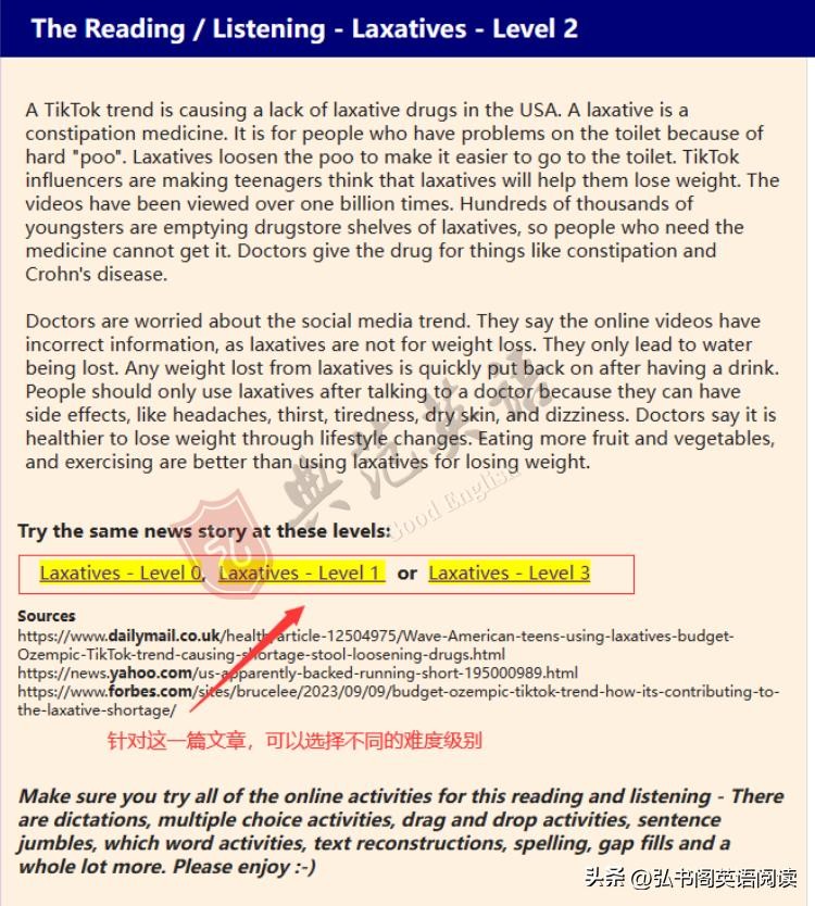 丰富的国际新闻素材,在开拓视野的同时感受最标准的英语。每一篇文章都按照难易程度划分等级,循序渐进学习英语。阅读完相关文章后会有练习题进行训练,孩子可以从“听说读写”等不同方面进行学习。