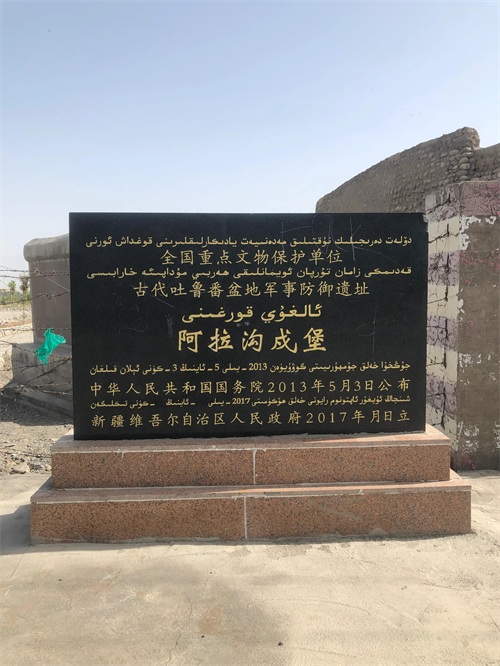 鱼儿沟烽火台是俗称,人们都这么称呼,政府规范的名称为阿拉沟戍堡,也称作石垒。因此处常年干旱少雨戍堡得以保存至今,并在20多年前进行了大维修,现在是用铁丝网及铁栅栏圈了起来,边上有个简易的门也是上了锁,处于无人看管状态游客也进不了里边,只能在外围观看,以防人为的损坏。