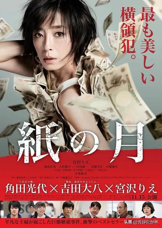 《纸之月》是一部犯罪电影,宫泽理惠在片中展现了出色的演技。她饰演的角色在面临困境时展现出坚强和勇敢的一面,给观众留下了深刻的印象。
