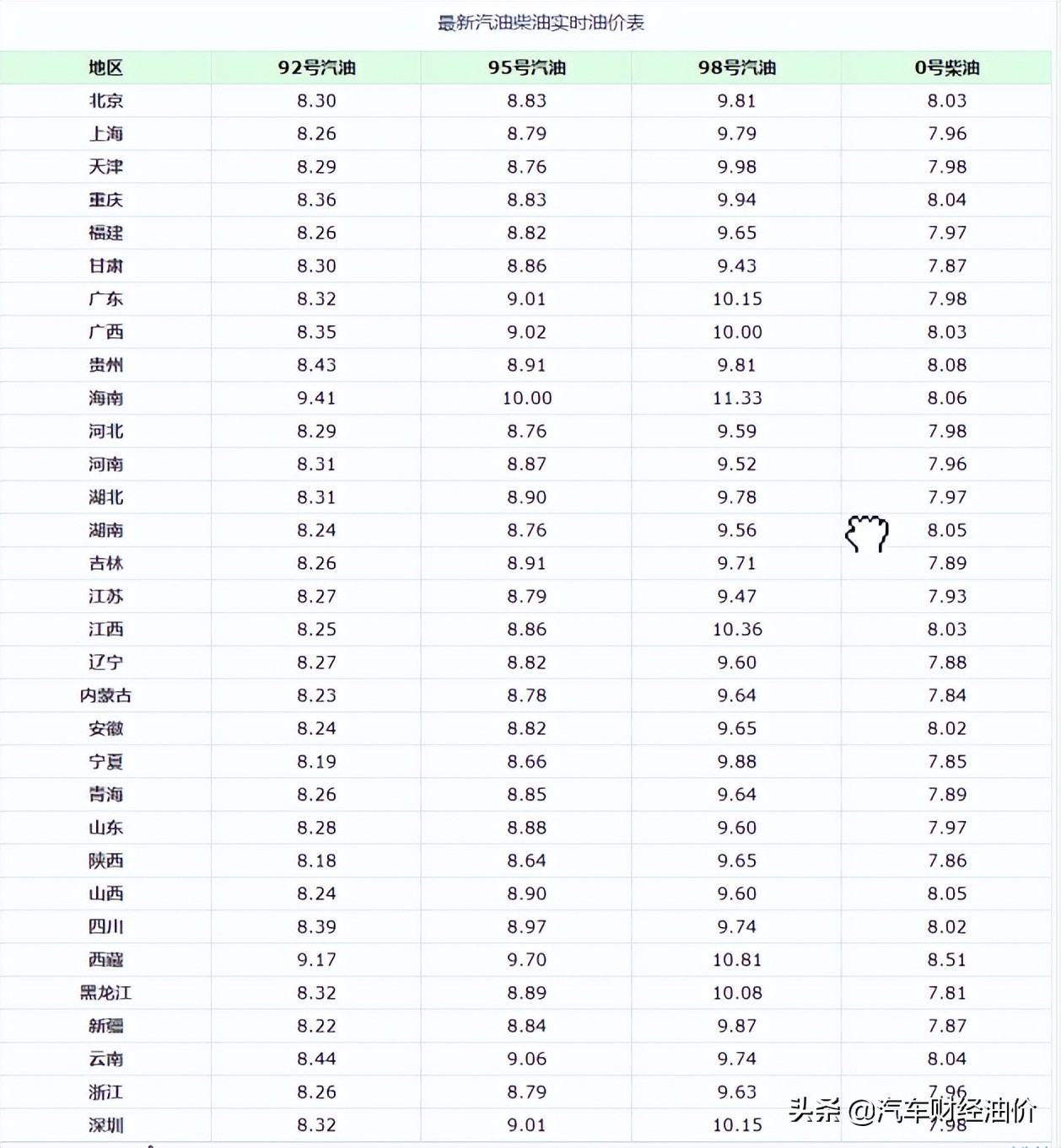 其余各省市92号、95号汽油,0号柴油调整最新零售价