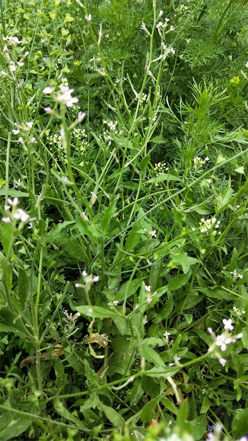 涩荠的适应性很强,在贫瘠的土地上就能生长的很不错,记得小时候村里的山坡地,小麦越不好,涩荠就越多。甚至在收获小麦的时候,部分地块已经干枯的涩荠比小麦多,严重影响小麦的收获。