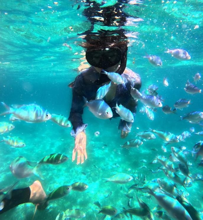 她的性格还是一如既往地活泼开朗,喜欢唱歌跳舞,也热衷打球、潜水。