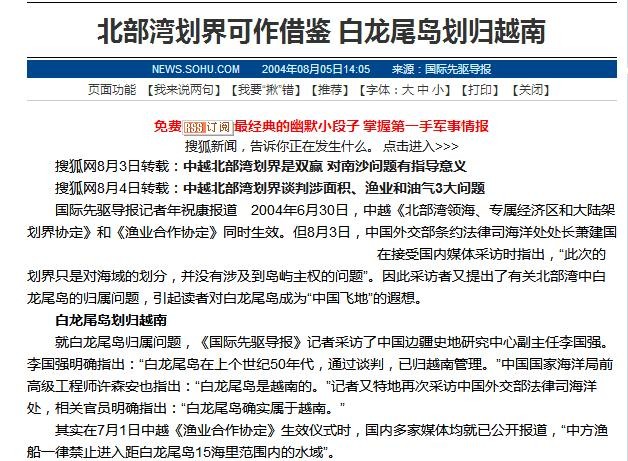 2004年的时候,中越双方更是签订了互换条约,包括当时中国社会科学院中国边疆史地研究中心副主任李国强在内的许多官员都指出,白龙尾岛确实是越南的。