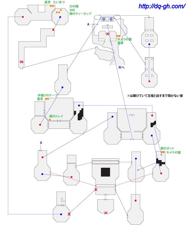 见到国王,原来他委托帕帕斯教导王子,之后我们就可以自由行动了,教堂上方的房间有一颗不可思议的果实。附上莱因哈特城堡地图: