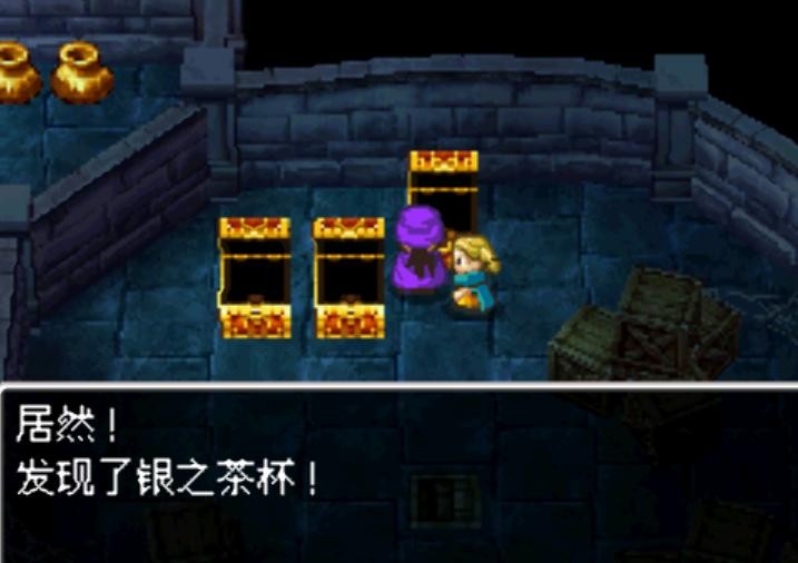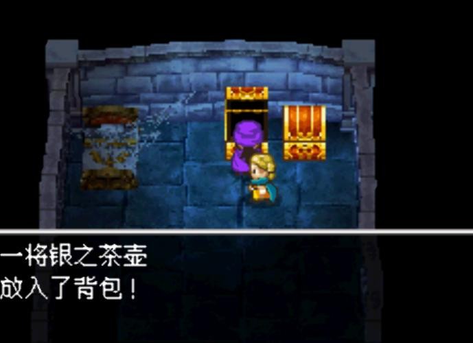 来到4F,使用火把。先别进中间和boss对话,往右走,跳下穴,调查箱子得到银之茶壶!