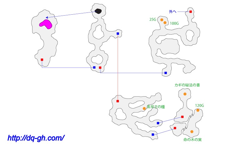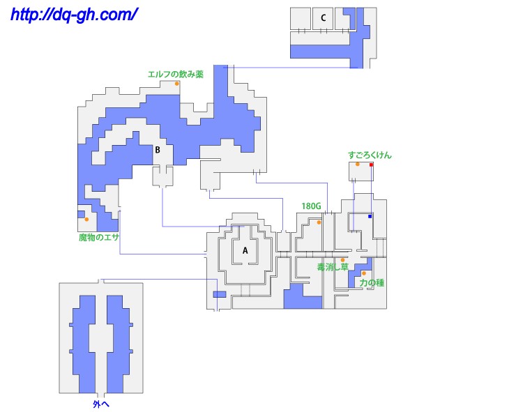 妖精村卖的东西还不错,在旅店给杀人豹买个石之牙吧。往西走来到洞穴,附上迷宫地图: