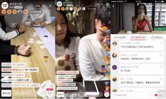 森马最近做的一次大型直播营销,是与天猫合作推出的《白日梦直播—七夕任意衣恋》,通过直播的方式将恋爱PK游戏搬到了现实之中,以内容触发用户的互动,使得互动变得更加积极主动。当天在线人数超20万,天猫直播页面观看18.2万,微淘直播互动点赞15.5万,共产生了超7000条互动。在直播过程中设置的边看边买、整点秒杀、竞猜等环节,不仅增加了直播的趣味性和互动性,还大大促进了销售的转化。
