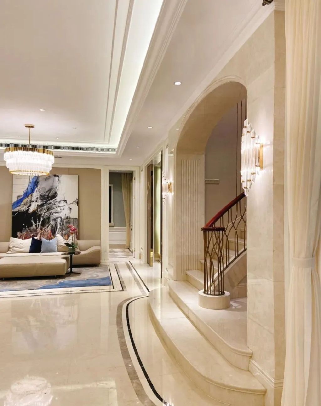 道里官邸一共设有十三栋楼房,为独栋老洋房,四面临空,坐北朝南,地上三层。大地建筑事务所设计、欧式现代风格。道里官邸位于上海市静安区长乐路,始建于三十年代的老别墅洋房,历史悠久又焕发新生的区位,它是上海蕞贵的豪宅之一。