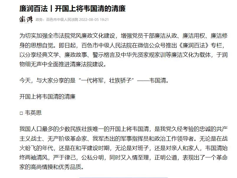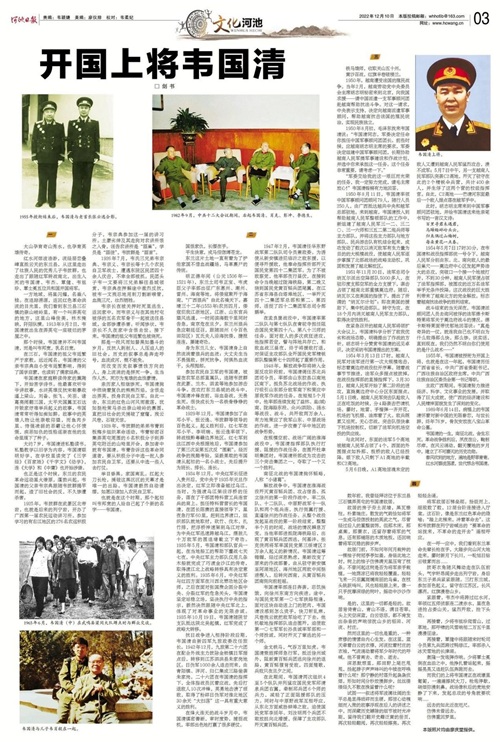 他常讲述革命经历,强调“国家利益高于一切”,次子韦肖毅受其影响,退役后撰写《韦国清传》,将父亲的革命精神转化为文化传承。