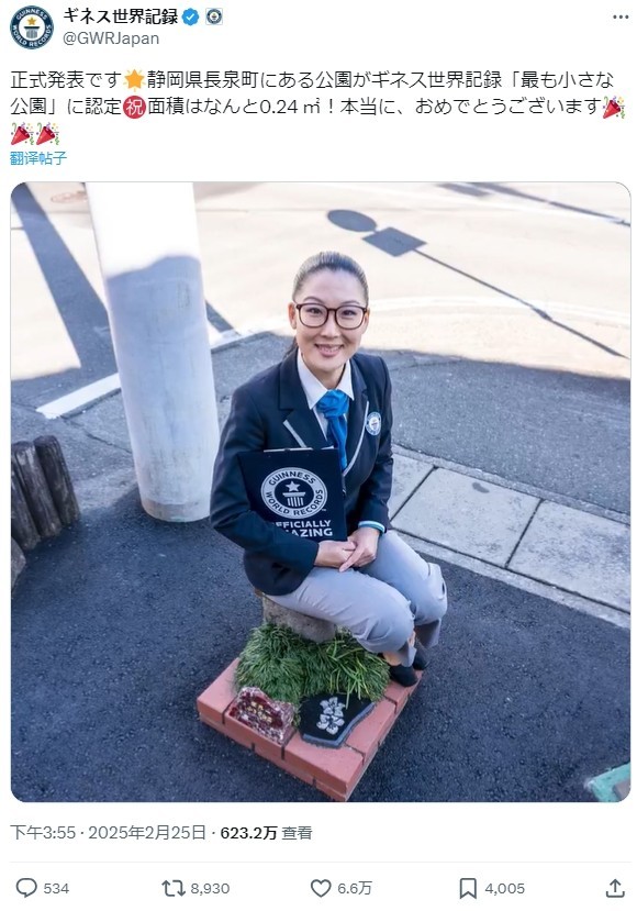 经过正式评审,日本长泉町的公园被吉尼斯世界纪录认证为“世界上最小的公园”。