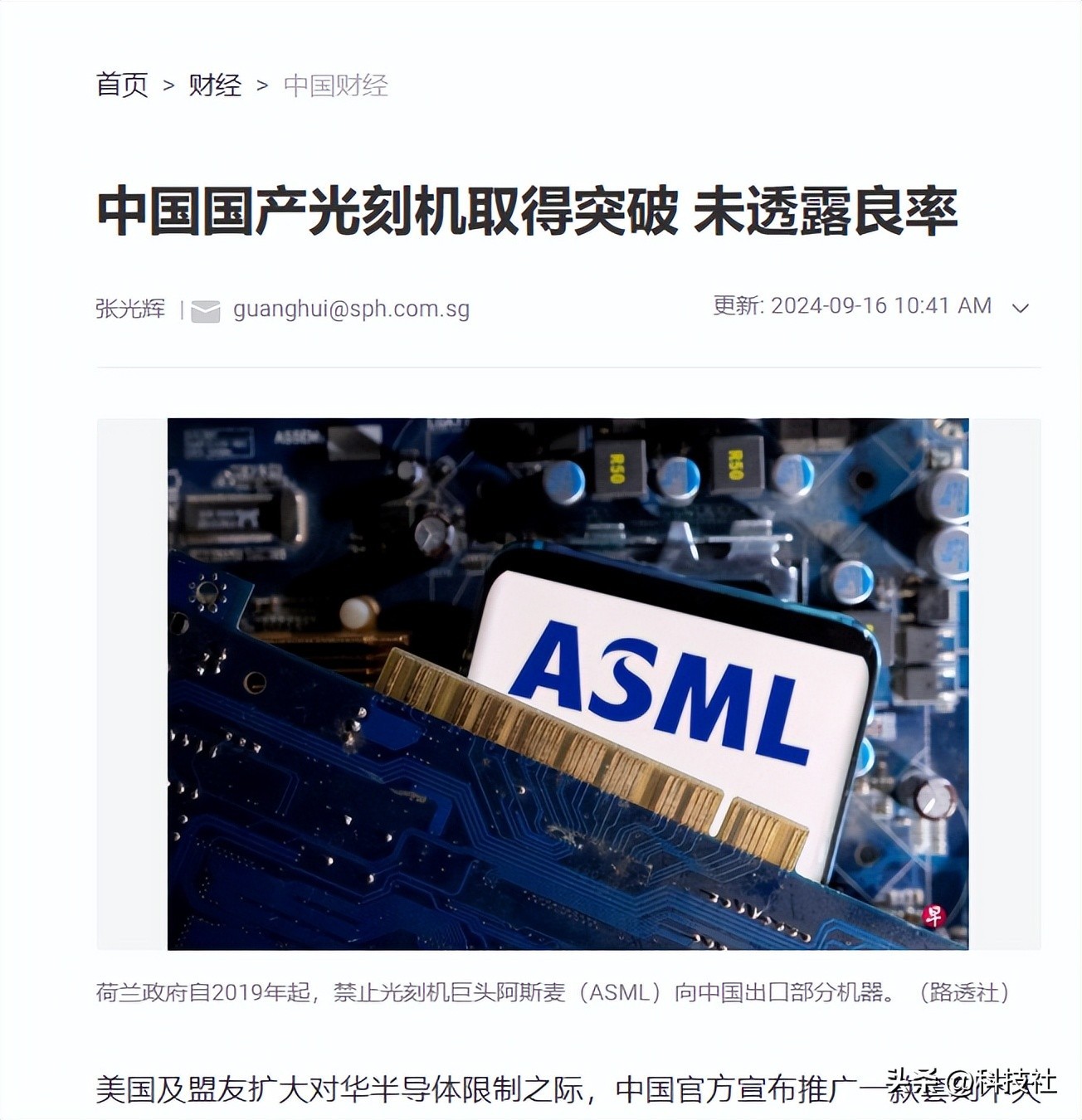 参考资料:中国财经,联合早报——中国国产光刻机取得突破 未透露良率