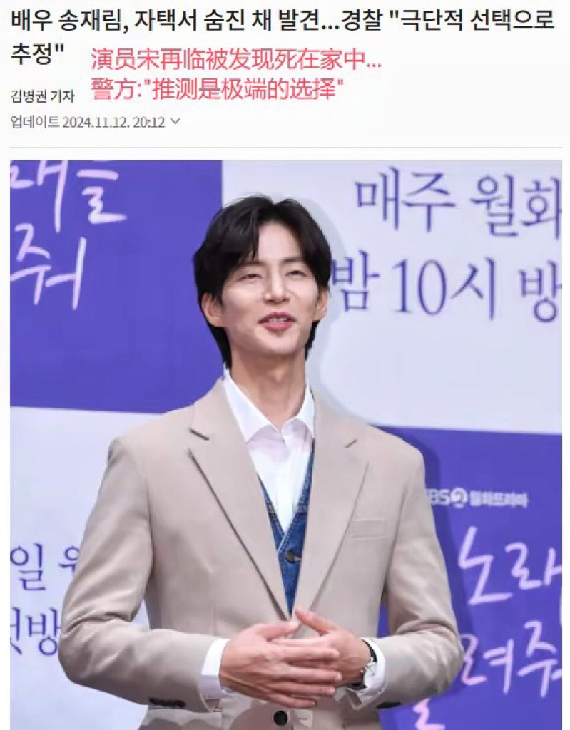 39岁韩星宋再临突然自杀!好友曝光去世前细节,遗体旁留2页遗书