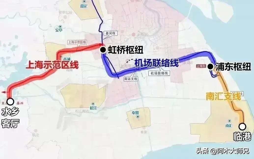 上海示范区线+上海机场线+上海南汇线,形成一条从上海最西端(金泽镇),直达上海最东端(滴水湖)的东西方向轨道交通大动脉。