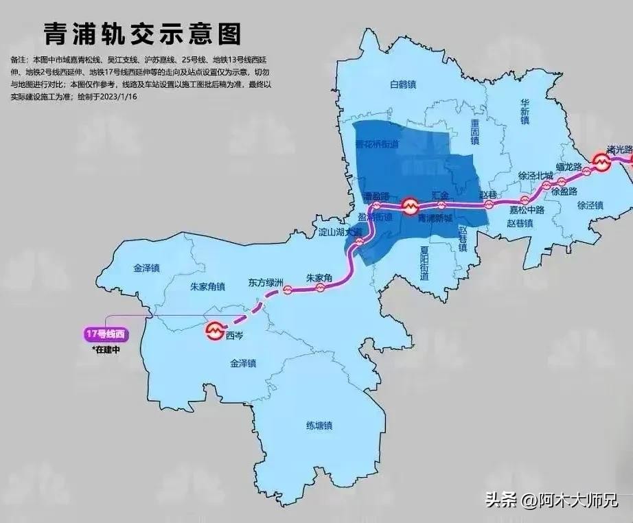 上海地铁17号线,一路沿着沪青平公路和盈港路的方向行进,主要覆盖青浦区的区域是: