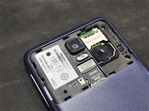 有趣的是,在那个可拆卸后盖仍然是主流的年代,中兴U950居然采用了一体式不可拆卸后盖的设计,从左下边的缺口处打开上盖,才能看见标准的SIM卡槽与micro-SD卡槽。得益于卡扣式设计,这块上盖固定得很稳固,不过打开扣上就需要费一些力气了。对数码爱好者而言,这种卡扣式的上盖也算是一种时代的眼泪了,