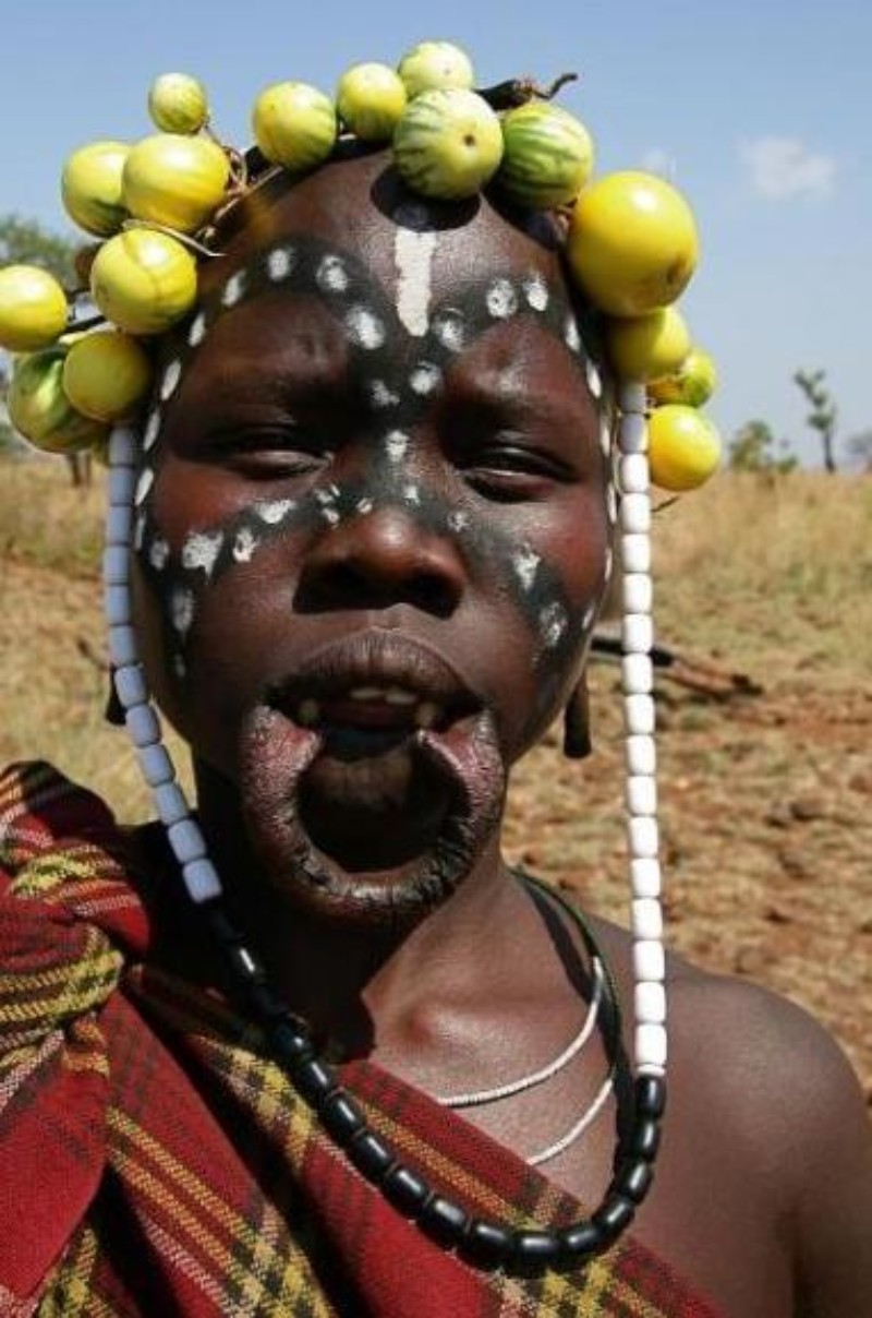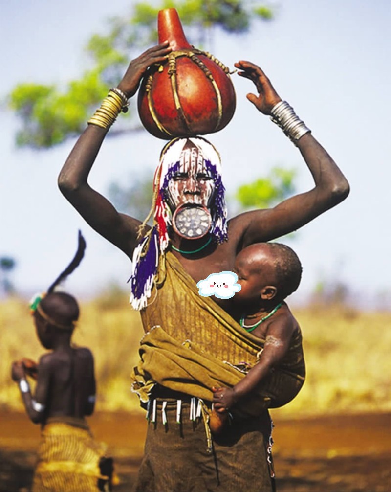 据说是摩尔西人为了防止外族人入侵或是担心奴隶主看上本族的姑娘,于是故意扮丑保护自己,慢慢形成以此为美。