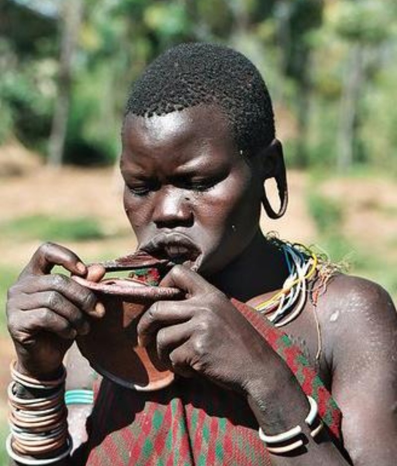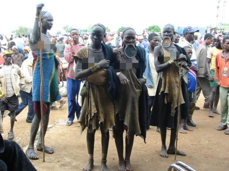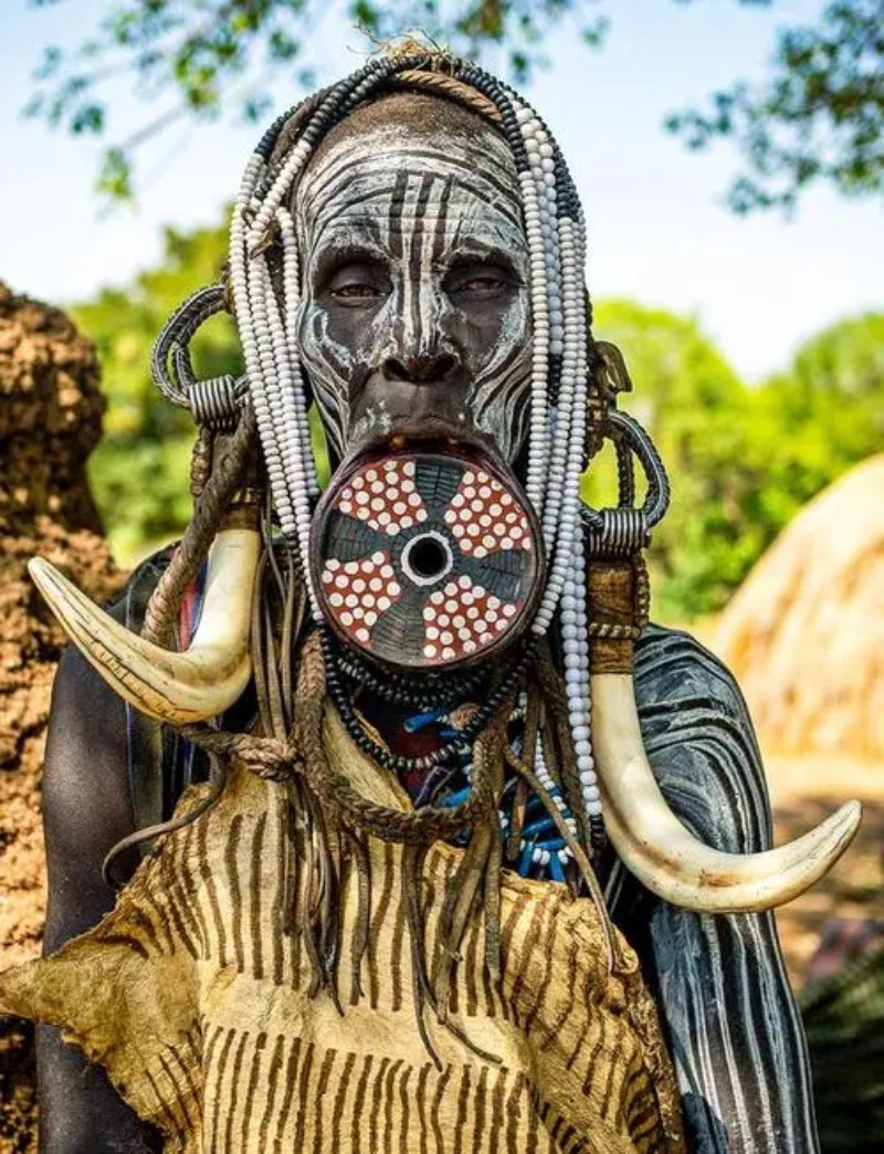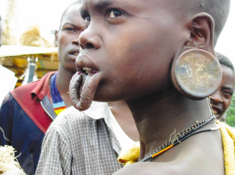 这里的风俗以嘴上装硕大的陶土盘子为美,并且置盘越大,意味着结婚时彩礼越多。