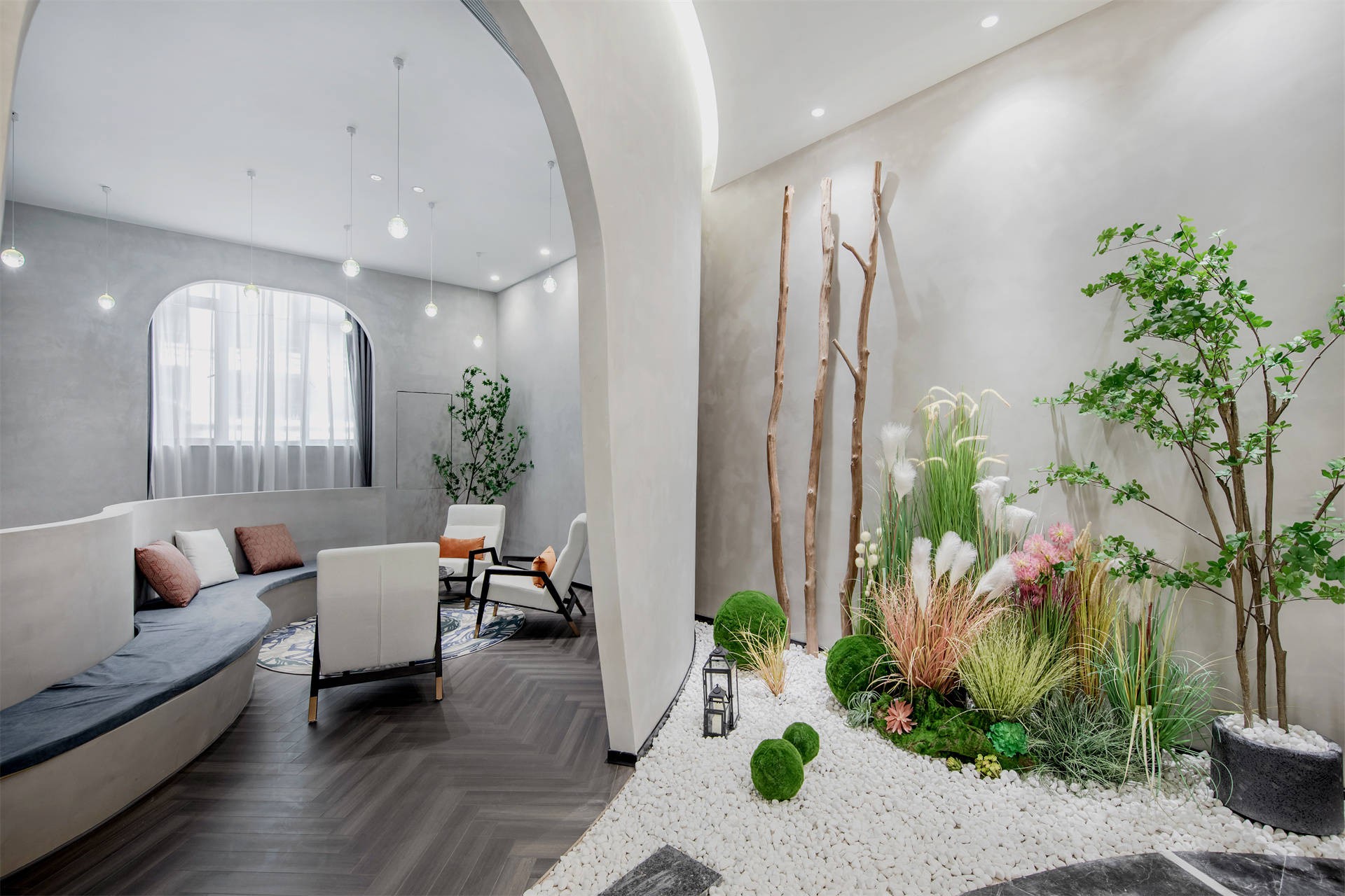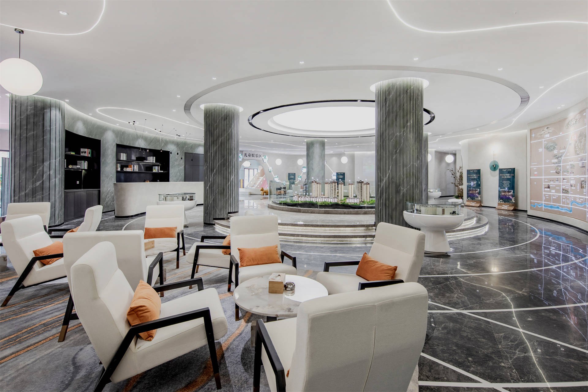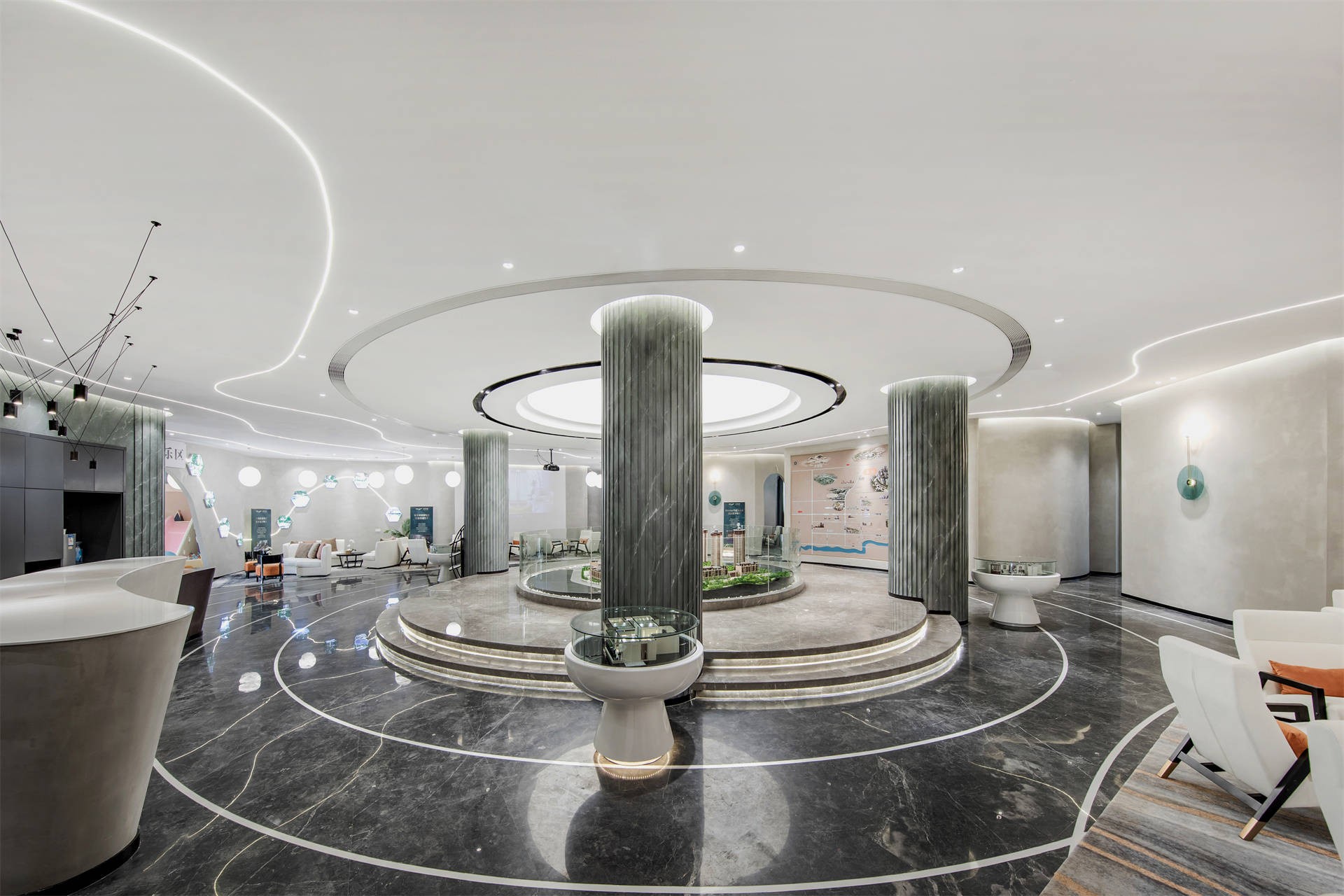 例如一个售楼部项目,整个空间凭着异形手法设计,彰显个性和时代感。