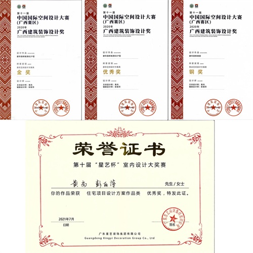 现为星艺装饰设计院广西分院(睿上空间设计事务所)副院长的黄尚,10多年前是个腼腆内敛的男孩,如今成熟稳重,眼中饱含着对事业专注的目光,办公桌上满是设计的案子、专业书籍,身后的书架全是关于他在星艺10多年来的点滴历程,包括各种奖杯、奖状和纪念照以及他对设计所坚持的信念:用高品质全案设计改变一些设计落地兑现率不高的局面,从而提升客户体验,实现设计效果“所见即所得”。