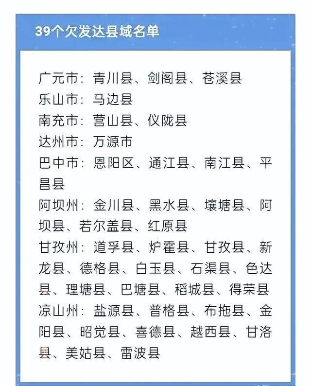 四川认定39个欠发达县,涉及巴中、达州、南充、广元、凉山等市州