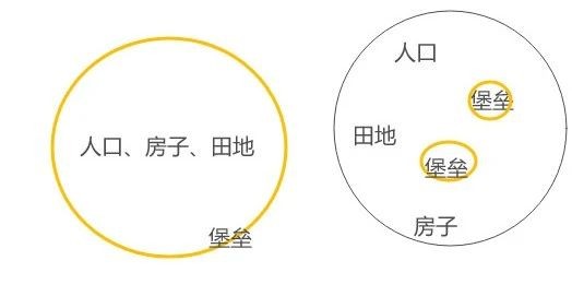 它北面、西面、南面三面一马平川,完全无险可守。形象地比喻,就是容易出强权的地缘板块,安全性好一些,山川像自然的堡垒,在外面围一圈,人口、土地在内部平原可以安全地发育,进可攻退可守。山东是反过来,堡垒在中间,人在外面。中间泰山周围一坨,半岛顶端一坨,人口和土地在外部平原,门户大开。(分别对应下图左、右)