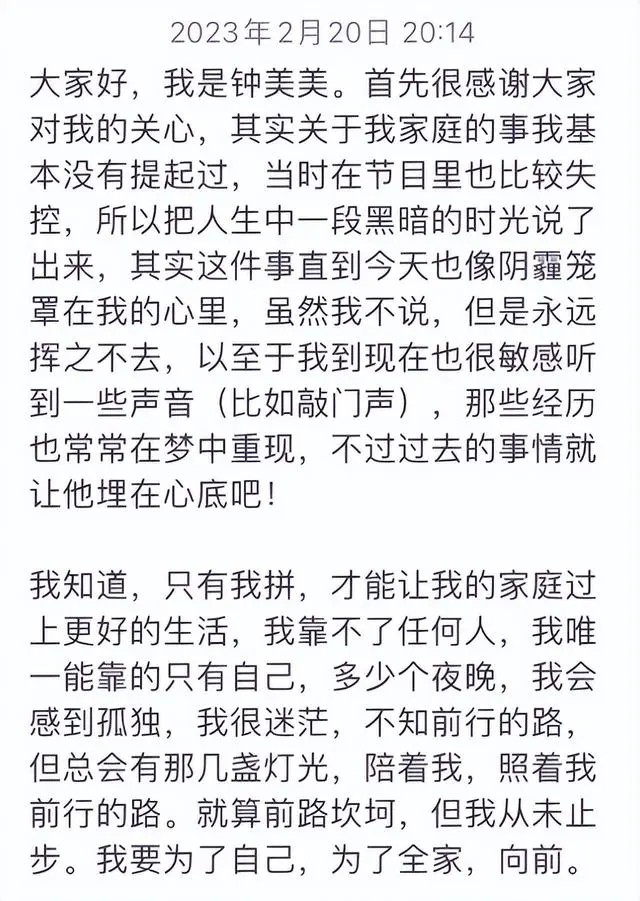 节目播出后《钟美美哭诉父母离婚原因》占据抖音热搜,他也在第一时间在自己的新媒体账号上作出回应,感谢大家的关心。