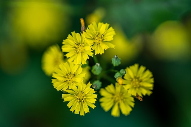 蒲公英的花是一根粗茎上只会顶着一朵小黄花;而黄鹌菜则是一条细细长长的小杆上开着一堆的小黄菊。