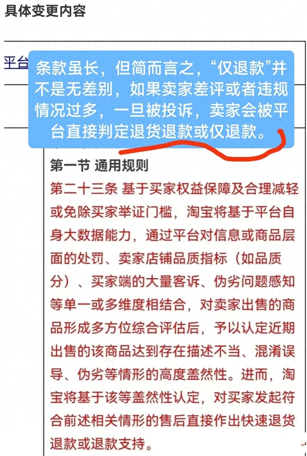 淘宝“仅退款”颇受关注,根据淘宝平台规则,如果卖家存在差评或违规记录,投诉多大数据差的,买家申请“仅退款”,平台会直接退货退款或仅退款的判定给买家退款。