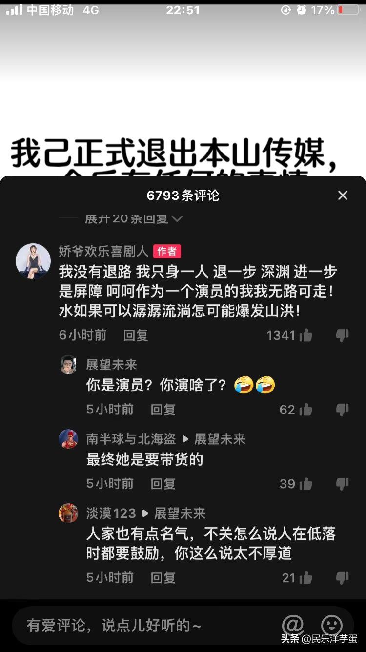娇娇在社交平台发布此消息时,配有“苍天饶过谁”字样,不知道暗指什么,到文章发布前,本山传媒还没有做出回应。
