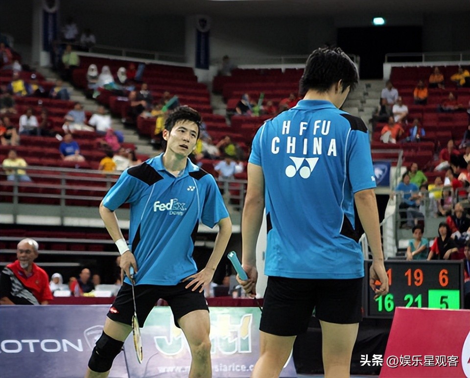 继续出发的傅海峰在2005年就和队友蔡赟拿下了全英赛的冠军,这是中国男双时隔14年之后的再度夺冠。