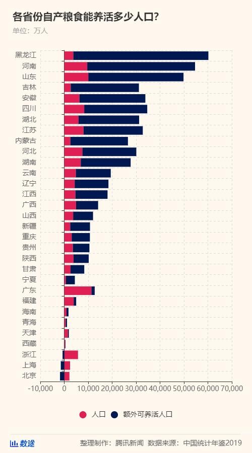 也就是说黑龙江的粮食产量可以“养活”16个自己