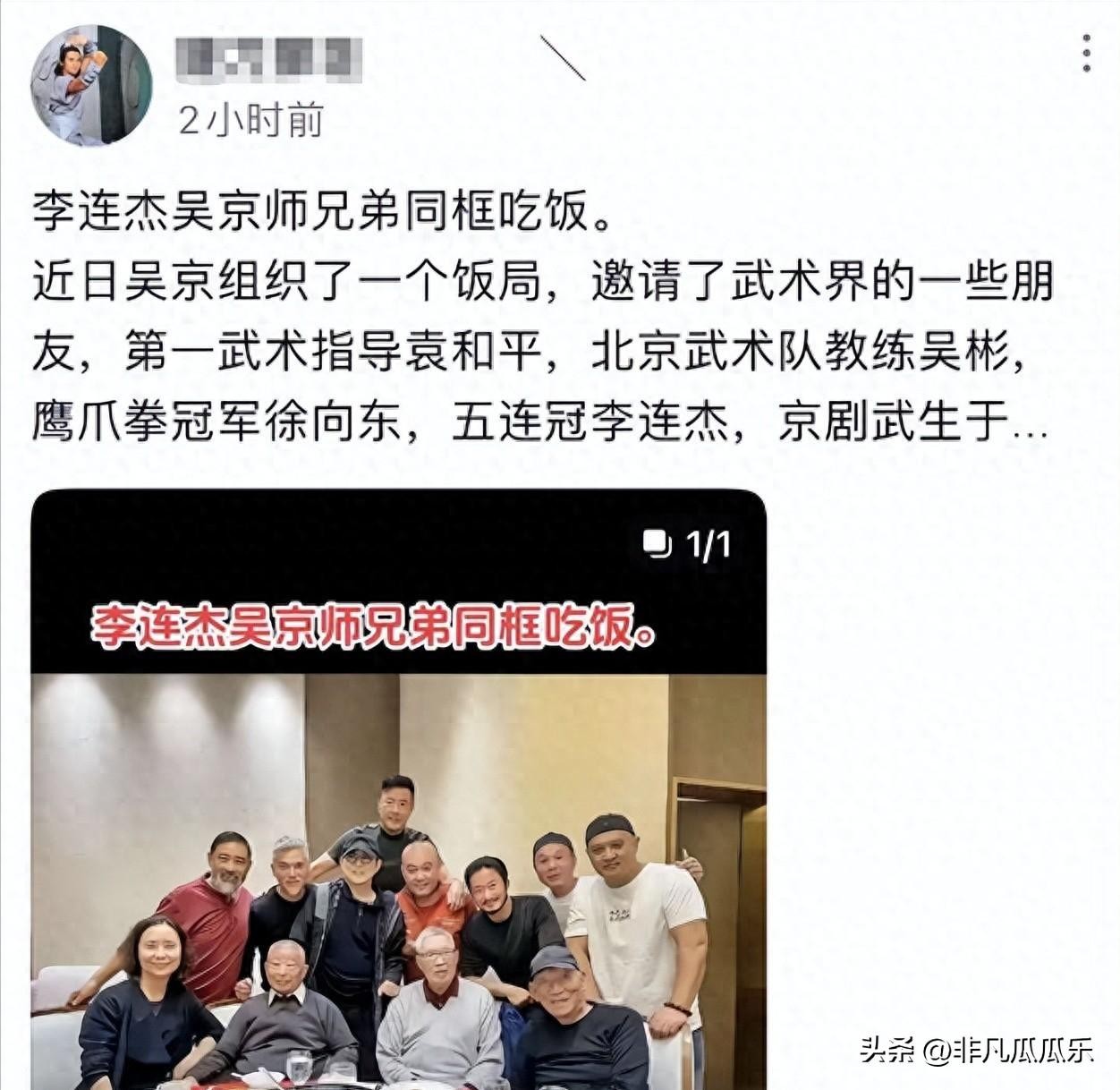 但是大家对他关注度不变,1月26日,就有消息传出,吴京的剧组聚在一起吃饭,而这里就有李连杰等人。