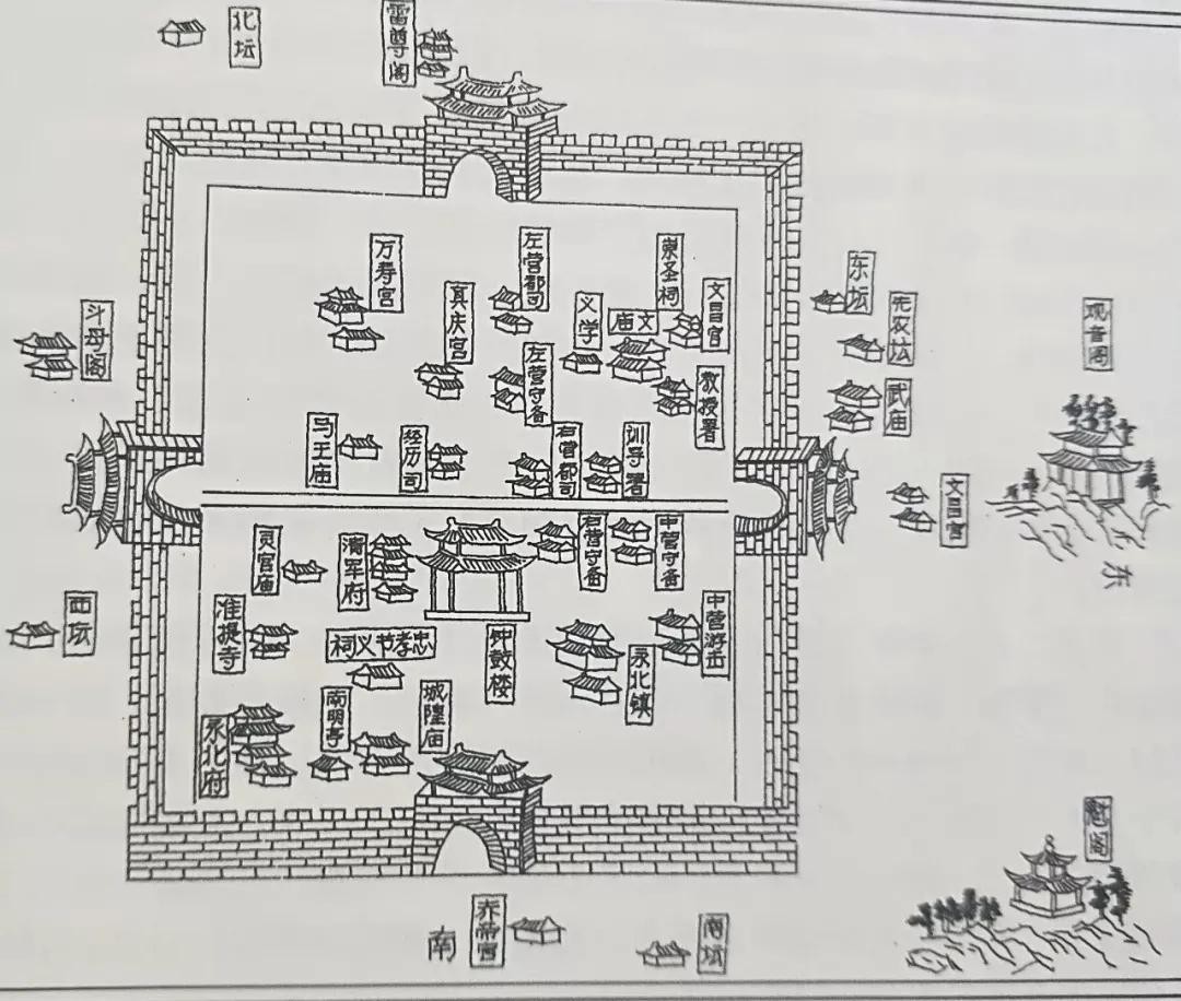 《明史》卷四十六《地理志》七载:“北胜:原北胜府,属丽江路。洪武十五年三月属布政司,寻降为州,属鹤庆府;二十九年改属澜沧卫,正统七年九月之隶布政司,弘治九年徙治澜沧卫城。澜沧卫在州南:本澜沧卫军民指挥使司,洪武二十八年九月置,属都司;弘治九年徙州来同治。寻罢军民司,止为卫。西南有澜沧山,南有九龙山;西有金沙江,环绕州治,亦曰丽江。”
