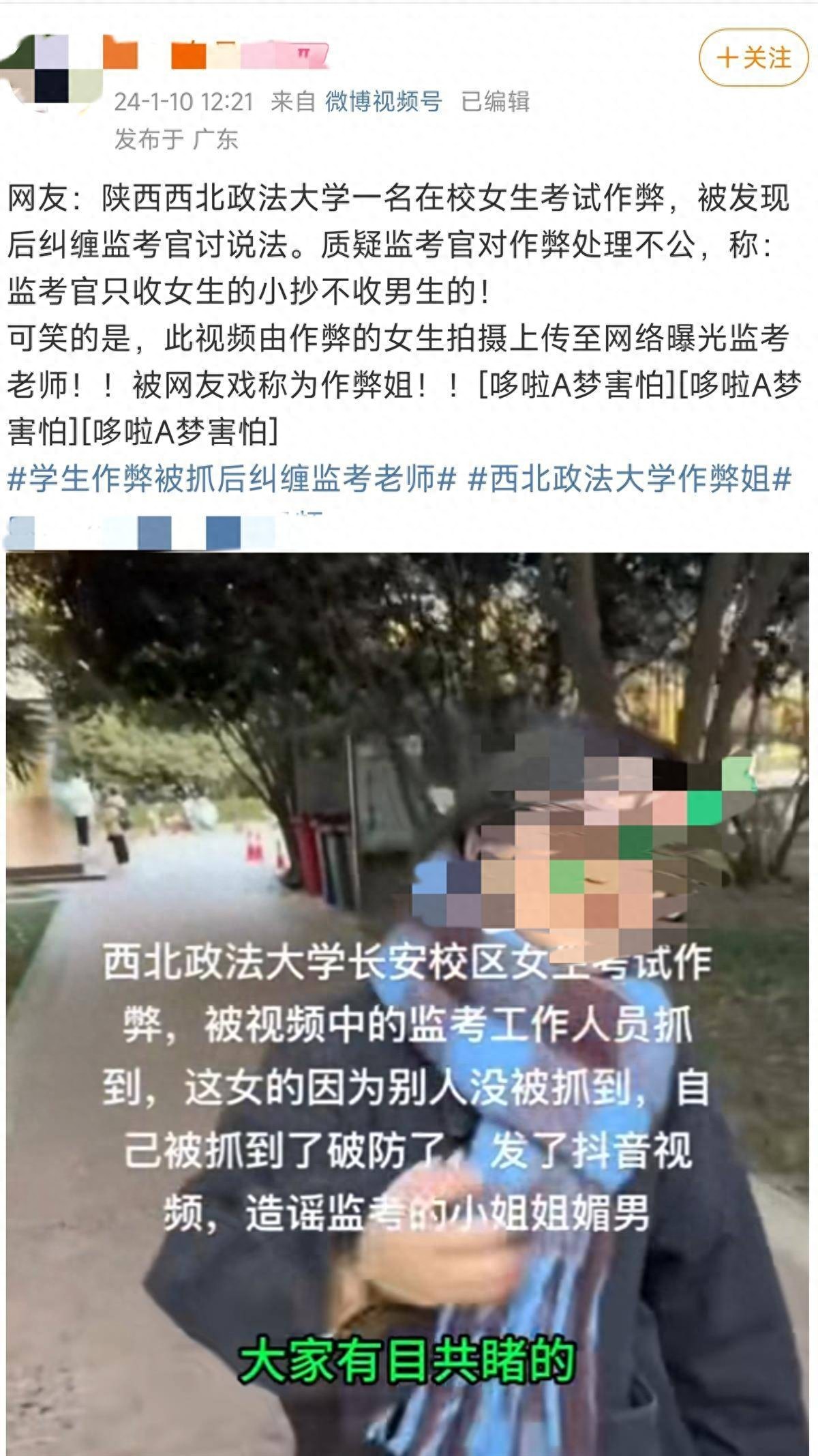 西北政法大学生作弊被抓,反拍视频曝光监考官引发关注,校方声明