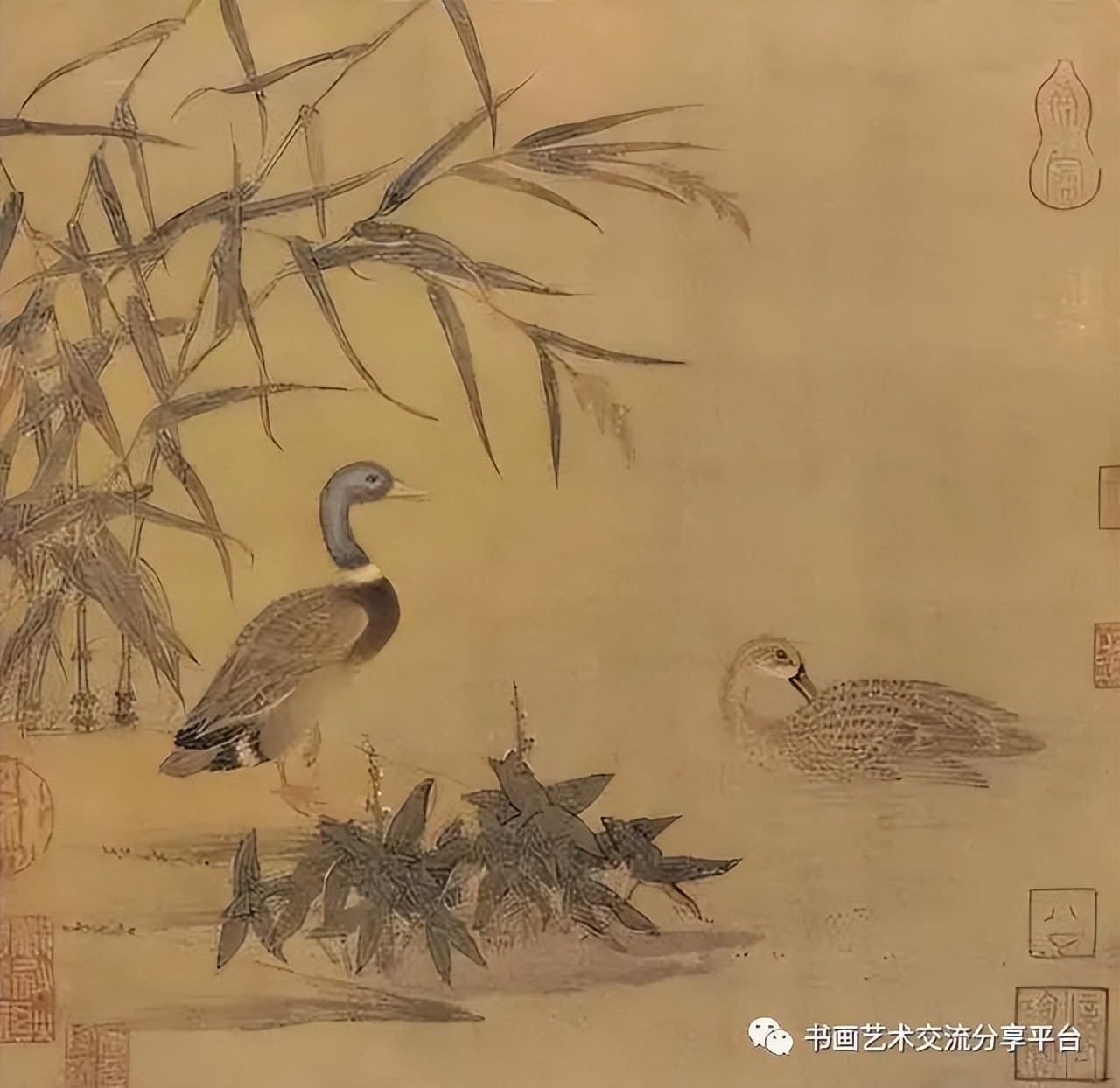 《溪芦野鸭图》 五代 黄荃 纸本设色