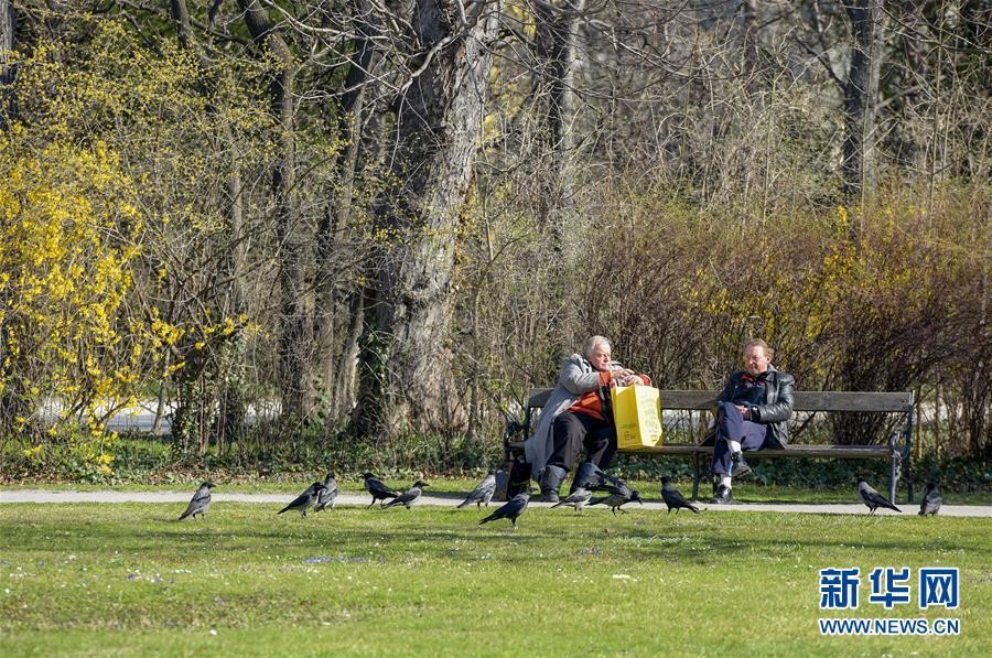 3月21日,游客在奥地利维也纳美泉宫花园内休息。 新华社记者 郭晨 摄
