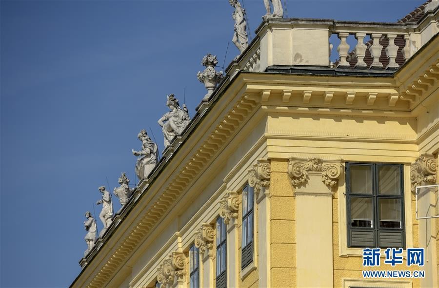 这是3月21日拍摄的奥地利维也纳美泉宫的建筑雕塑。 新华社记者 郭晨 摄
