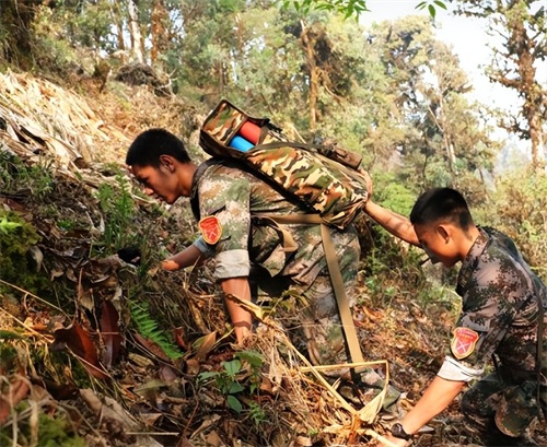 首先就是复杂的地形,很多雷区甚至都没有道路通行,战士们只能够在丛林密布且地势险峻的地方排雷。