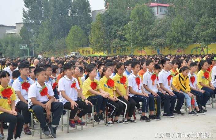 贾校长首先向全校师生通报了振奋人心的喜讯——中招考试再创佳绩:全校有333人被县一高录取,实现2018年上蔡县中招考试的“六个第一”。