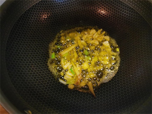 (2)油锅烧热后,放入葱姜蒜略微炝出香味。