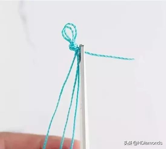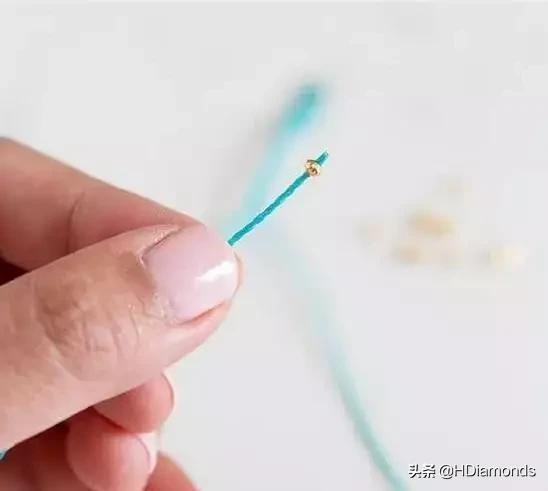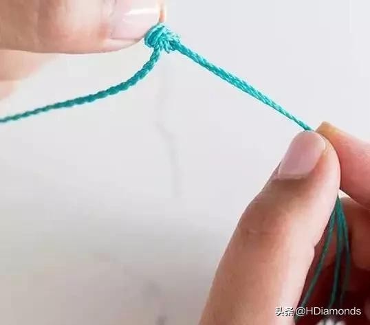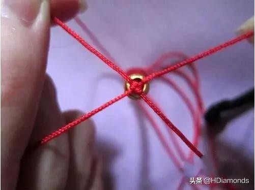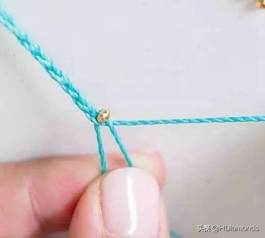 然后继续重复刚才的编法。首个结一定要拉紧了,才能把转运珠固定住。