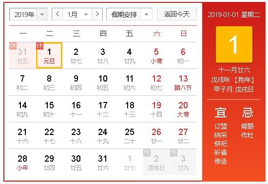 2019元旦怎么放假 2019年1月1日元旦节放假安排