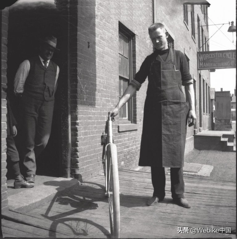 ▲工程师Oscar Hedstrom 研发的第一辆摩托车诞生。
