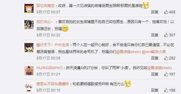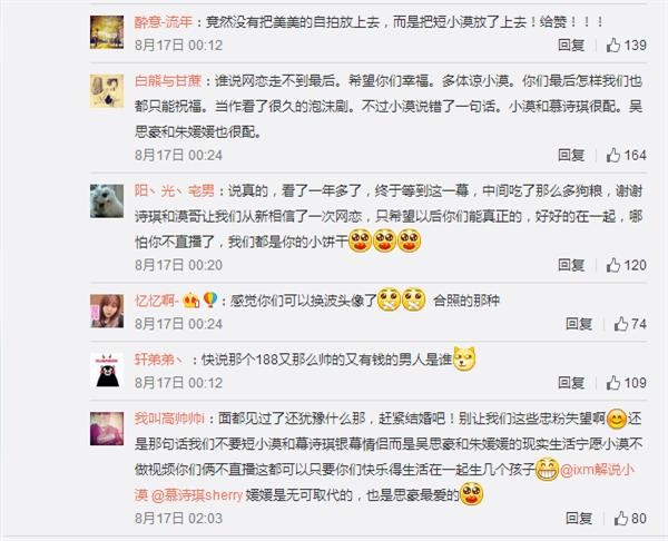 不过看起来网友们似乎对于他们的合唱并没有很多的关心,而是更为注意的两人之间满满的爱。纷纷表示对于小漠和慕诗琪的祝福。