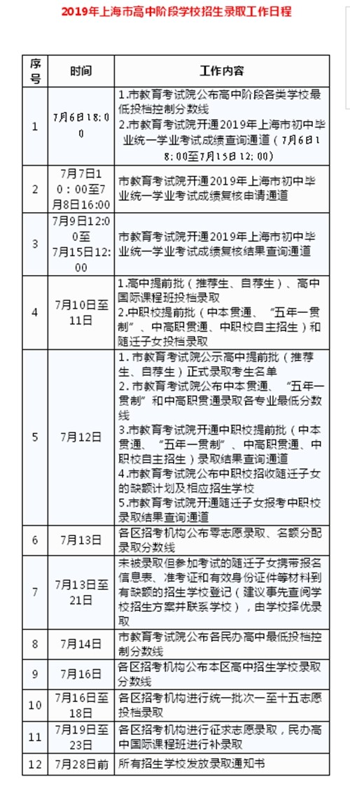 市教育考试院今天权威发布高中阶段学校招生最低投档控制线:零志愿562分(回民中学、久隆模范中学557分),取得提前批预录取资格不得低于530分,公办普通高中450分。各类分数线详见下文。今天18时开始,您可通过电脑端登录上海招考热线www.shmeea.edu.cn查询。