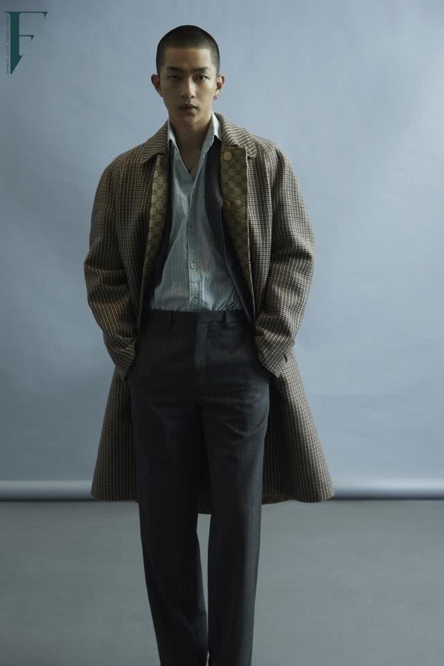 中长款的复古风格子外套,格子颜色独特显稳重气质,里边搭配不同颜色的衬衫两件,三件衣服显得有层次感,也是非常流行的搭配方式,最里面的衬衫也不能全部扣上,造型师很厉害懂得如何结合屈楚萧自身的气质给他搭配衣服,这样的穿法又痞又帅。下身的直筒西装裤也给人一种斯文败类的感觉,不得不说这样的屈楚萧是有其很独特的男子气概。